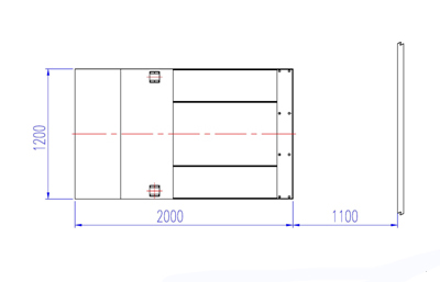 1.摆放篮球架箱体,使箱体前沿距场地边线外侧距离为1.1米(箱体中心正对球场中心)。(见图一)